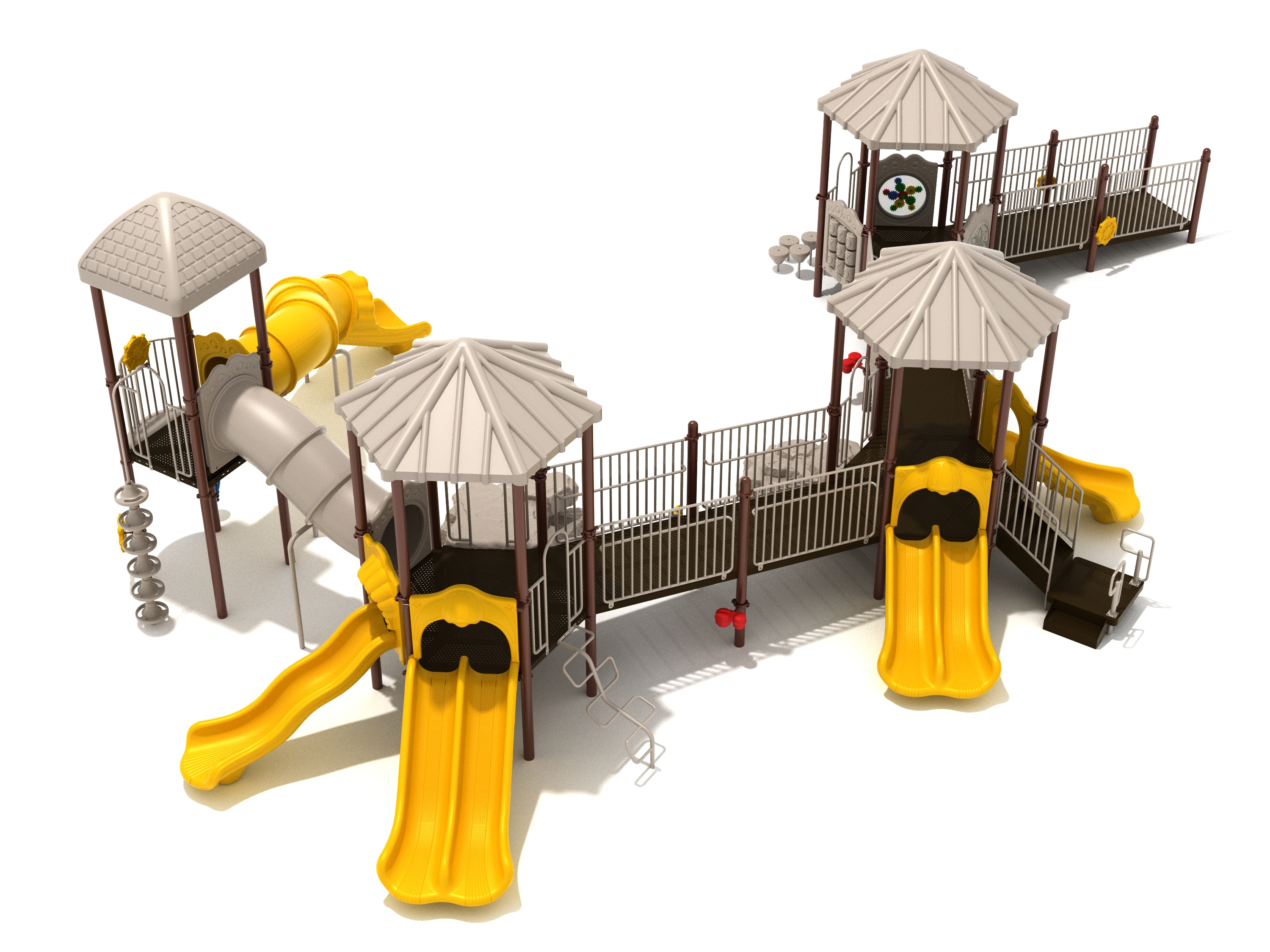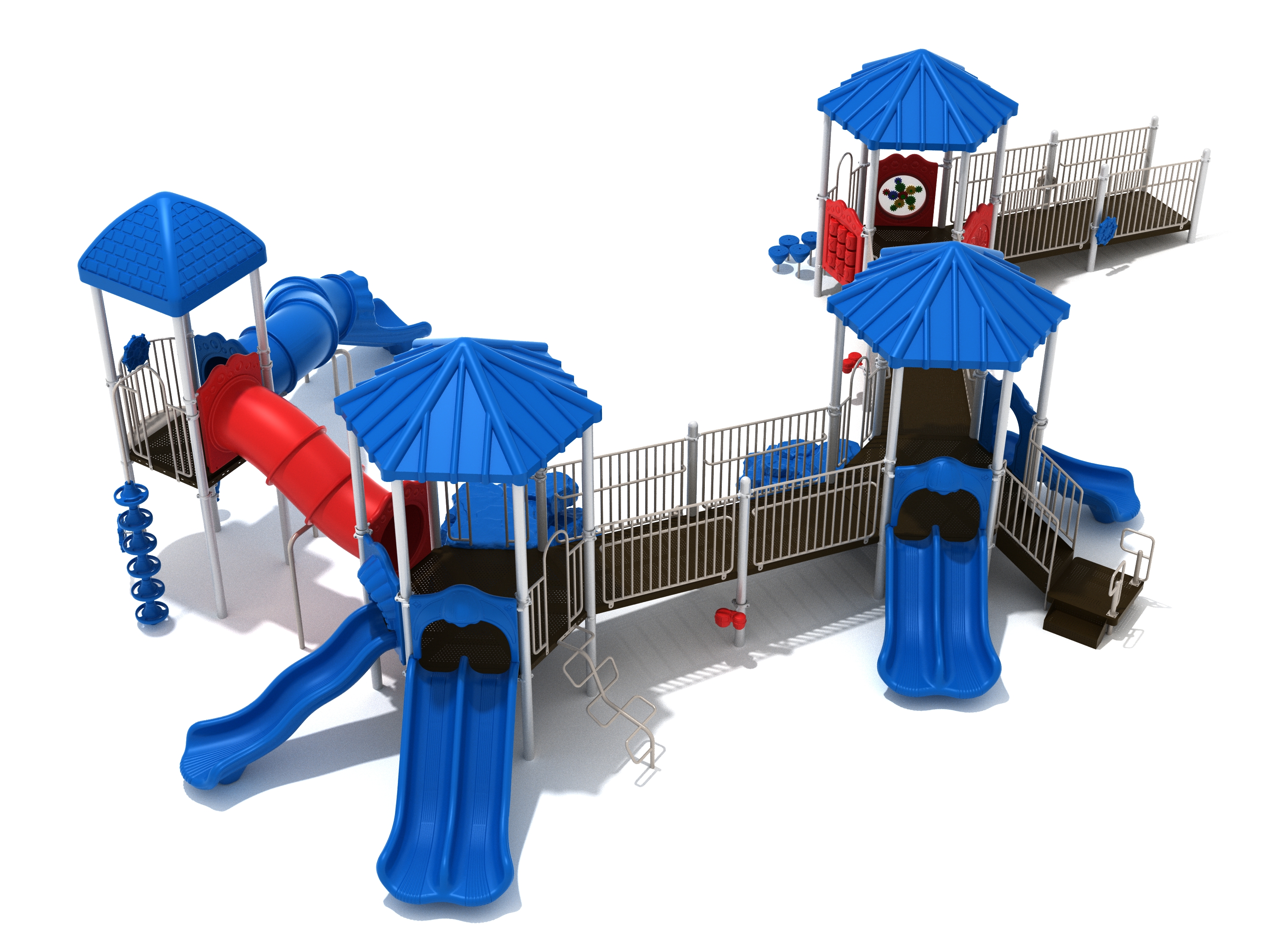 The Riverbend Run ADA Accessible Play Structure comes in 35 pre-designed color schemes or you can choose custom structure colors to fit any play space theme. If interested in creating your own custom colored structure, just click the orange "Add To Quote" button above and add your color requests in the "Add More Info" section of the quote request OR just contact the Noah's Park & Playgrounds design team to get a free quote and 3D colored retendering of your desired custom colored playground structure.