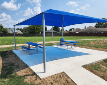 - Shaded seating areas: Provide relief from the sun for parents and guardians. Consider adding shade over playground equipment as well, to not only allow children to play longer, but so to protect the equipment longer.