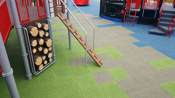 Rubber tiles are preformed, interlocking panels that create a flat, durable, and slip-resistant playground surface. They're often used in schools, daycares and inclusive play areas where accessibility and long-term durability are key